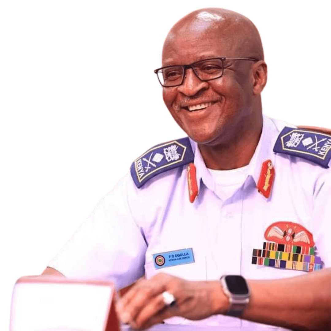 Prior to this appointment General Francis Omondi Ogolla was the Vice Chief of the Defence Forces. Gen Francis Omondi Ogolla joined the Kenya Defence Forces on 24 April 1984 and was commissioned as 2nd Lieutenant on 6 May 1985 and posted to Kenya Air Force. He trained as a fighter pilot with USAF and as an instructor pilot at the Kenya Air Force (KAF).